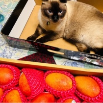 Hola say MONA!台湾からマンゴーが届いたの。あたちは食べれないけど、ママ達の大好物らちい。マンゴーは興味ないけど箱はすんごく居心地いい。これいい。すごくいい。あたち 気に入った!誰にもあげないわよ!!おばちゃんも駄目よ!!と、言うことで、マジでボヌールが入 ...